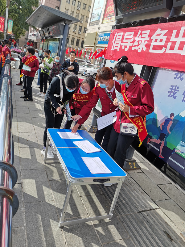 大家在征求意見的同時,也積極向身邊人分發(fā)宣傳單,宣傳開展綠色出行的意義和方式,樹立綠色、低碳、健康、環(huán)保的意識,帶動更多人參與到行動中來,爭做綠色出行的倡導(dǎo)者與踐行者,綠色出行、優(yōu)選公交!
