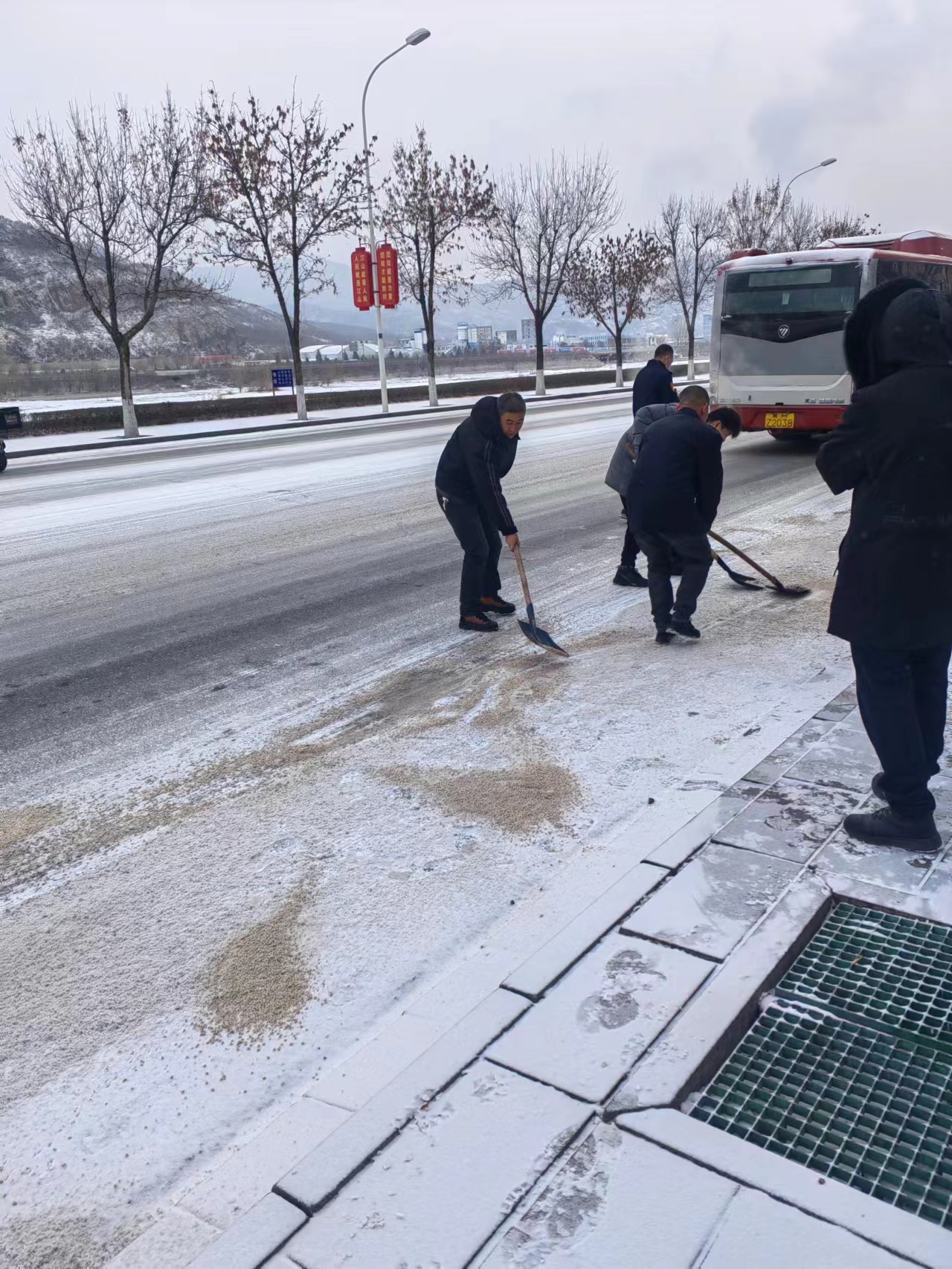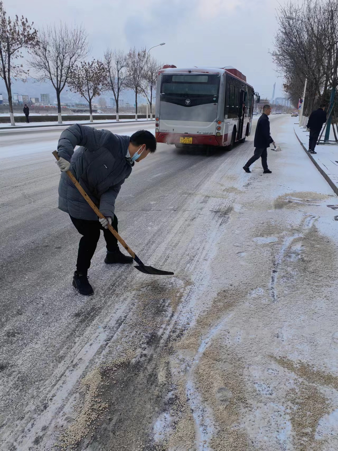 初雪為城市帶來(lái)不一樣的美好,但也帶了出行不便,客運(yùn)二公司的干部職工們不畏嚴(yán)寒,不辭辛苦,積極應(yīng)對(duì)雨雪天氣,只為了保障公交車能夠及早的恢復(fù)正常運(yùn)營(yíng),減少安全隱患,護(hù)送每一位乘客平平安安的到達(dá)目的地,他們一鐵鍬一鐵鍬地?fù)P灑著分量不輕的融雪劑,清除的是積雪,溫暖的是人心??瓦\(yùn)二公司全體職工上下一心,將全心全意為人民服務(wù)的宗旨理念,實(shí)實(shí)在在的落實(shí)到實(shí)際行動(dòng)中,努力為市民乘客冬季出行提供更加優(yōu)質(zhì)、便捷、安全、高效的公交服務(wù),全力滿足市民乘客出行需求。