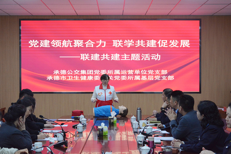 為深入學習貫徹習近平新時代中國特色社會主義思想和黨的二十屆三中全會精神,扎實貫徹落實新時代黨的建設總要求,按照市國資委黨委“搭建共建平臺、結(jié)對開展活動”廣泛開展黨建共建聯(lián)建活動要求,2024年11月15日,承德公交集團黨委所屬運營單位黨支部與承德市衛(wèi)生健康委機關(guān)黨委所屬基層黨支部聯(lián)合開展了“黨建領航聚合力 聯(lián)學共建促發(fā)展”黨建聯(lián)建共建主題活動。承德公交集團黨委副書記、工會主席丁智勇,承德市衛(wèi)生健康委機關(guān)黨委副書記、四級調(diào)研員王思諾以及雙方基層黨支部書記、黨員代表,紅十字會講師等50余人參加活動。此次活動由承德公交集團黨委辦公室副主任陳稷主持。